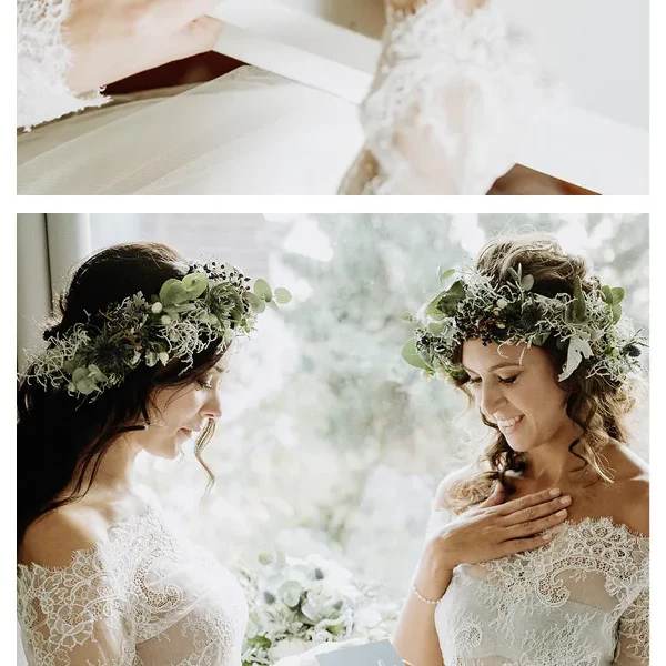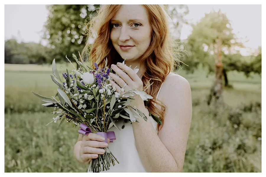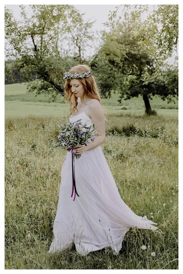 Nun habe ich aber noch gar nicht über unsere wunderschöne Braut Romina geschrieben. Dabei ist Sie das eigentliche Highlight dieser Boho-Hochzeitsinspiration, oder? Romina trägt ein Spitzenkleid, welches wir gemeinsam einige Wochen zuvor bei Theresa von Elbbraut ausgesucht hatten. Ein wahrgewordener Traum.
