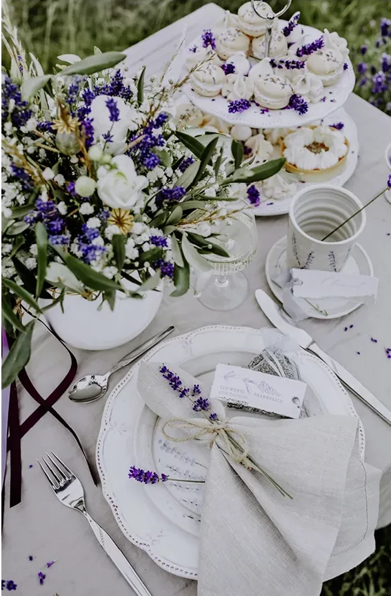 Passend zu dieser Jahreszeit hat Iris von Fingerglück eine fabelhafte Spätsommerliche Hochzeitsidee auf die Beine gestellt. Passend zu ihrer Schmuckkollektion mit dem Namen Lavendel, gibt es Lavendel in Hülle und Fülle. Das macht richtig Lust auf Frankreich oder die Toskana.