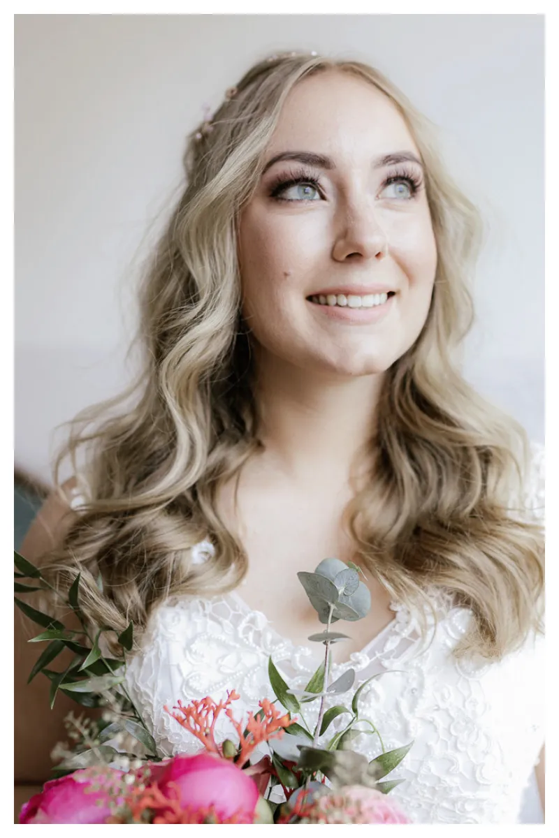 Durch ein frisches Makeup und Styling verwandelte Monika Rußmeier (Kontakt über Tatengold) unsere schöne Annika in eine moderne und stilvolle Braut.