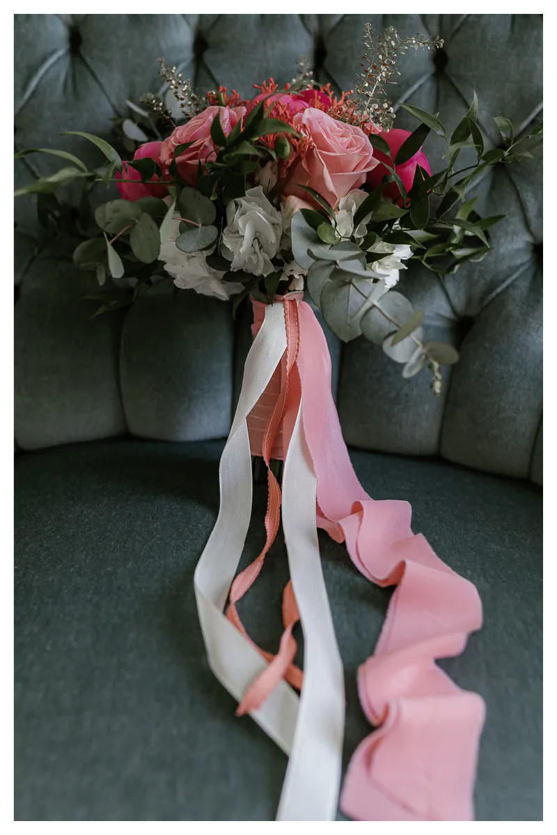 Bloom Flowerstudio zauberte eine hochwertige und elegant-verspielte Blumendekoration. Mit einem Gesteck aus Orchideen, Nelken, und verschiedenen Trockenblumen setzten die Floristinnen unsere Vorstellungen perfekt um. Absolutes Highlight war die „Wolke“ aus Pampasgras über dem Brauttisch.